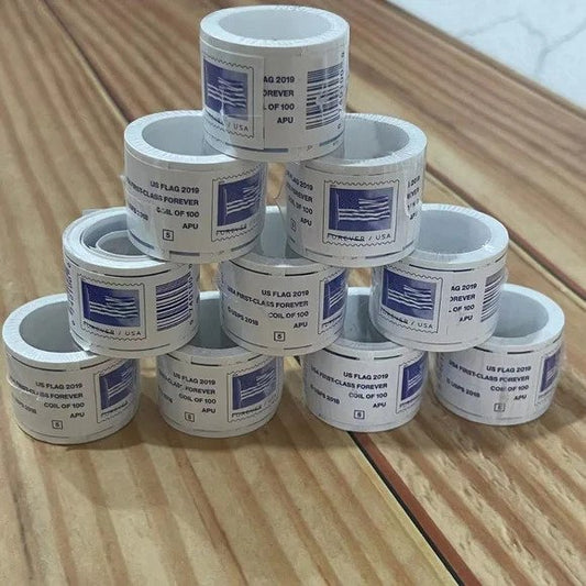 Lot of 100 Rolls of Forever Flag Stamps (100 coils = 10,000 stamps)