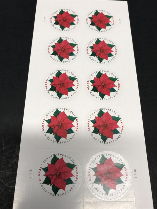 Global Forever Postage Stamp Poinsettia design - International mail, Sheets of 10