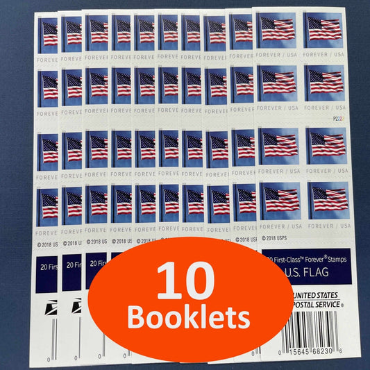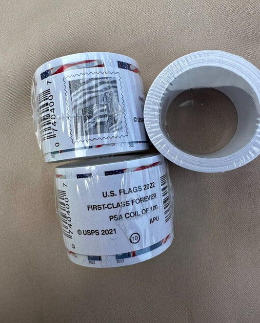 Lot of 10 Rolls Forever First Class Postage Stamps- (10 coils of 100, 1000 stamps total) Flag Designs
